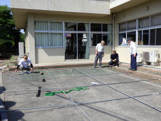 5月12日(金)地区のボランティアさんに、ゴーヤのネット張りをしていた