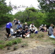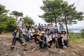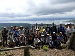 < 参加者全員で記念撮影 > お山で食べるおにぎりは最高!