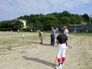 7月23日(日)小学校最後の日曜日、グラウンドゴルフ同好会の協力で、
