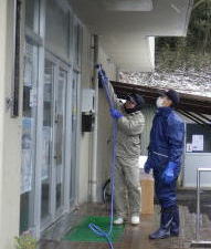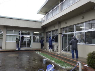 12月21日(木)雪のちらつく中、仁寿会の皆様にコミセン内外の窓ふきを