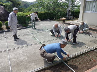 5月12日(月)地区のボランティアさんにゴーヤのネット張りをしていただ