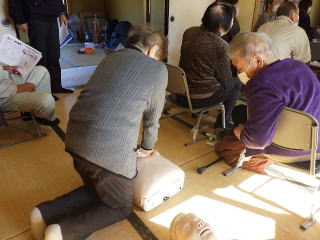 時期に増えるヒートショックについてお話を聞き、その後AEDの使い方や訓練