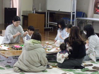 「いずも民話の会」による紙芝居と腹話術を楽しんだ後、親子で工作をし、