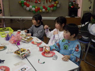 サンタさんからのプレゼントをビンゴゲームをしながら渡すなど、会場はクリ