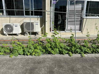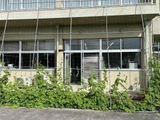 地域のボランティアさん4名に、ゴーヤの棚を設置していただきました。