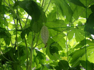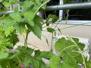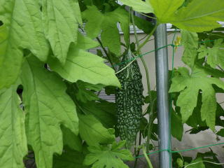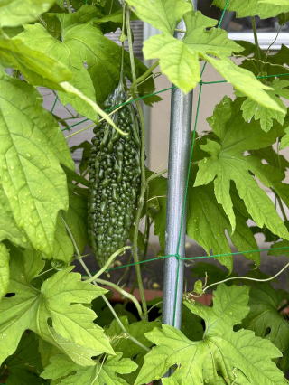 2階までツルが伸びて、ゴーヤもたくさん収穫できています