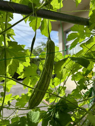 2階までとどきました 収穫 第1号!!デリシャスゴーヤ