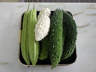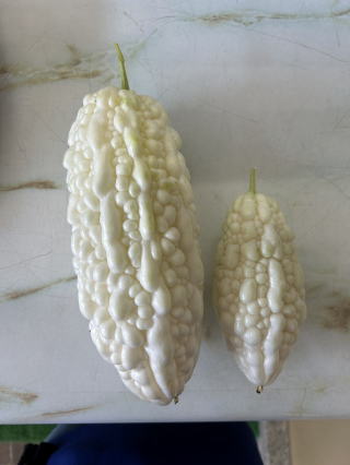 真っ白でとてもきれいな白ゴーヤ☆ 今朝は3つ収穫しました。