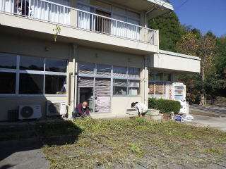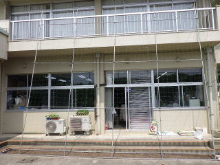 地域のボランティアさん4名に、ゴーヤの棚を設置していただきました。