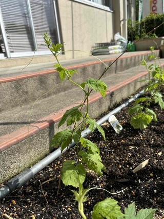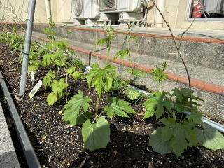 苗を植えて1週間。つるを伸ばして頑張っています。