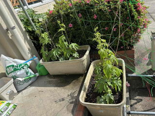 上へ上へとツルが伸びています 葉っぱも大きくなり立派になってきました