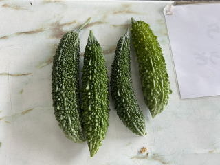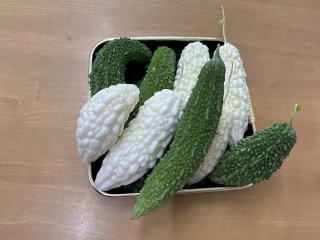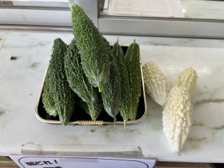 濃いみどり色で、実もゴツゴツしていてとても立派なゴーヤです!!