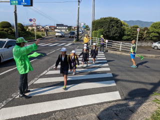 地区交安協・交対協では、通勤、通学時間帯に地区内4か所で立哨したり、