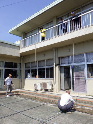 5月12日(金)地区のボランティアさんに、ゴーヤのネット張りをしていた