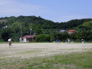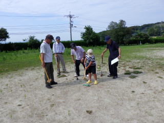 7月23日(日)小学校最後の日曜日、グラウンドゴルフ同好会の協力で、