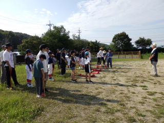 午前8時から行いました。参加者は大人21人、小学生19人で賑やかに