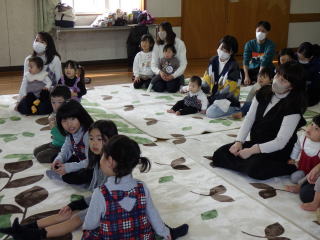 すこやか遊々部さんによる大型絵本の読み聞かせと魚釣りゲームを楽しみ、