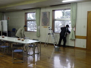 12月21日(木)雪のちらつく中、仁寿会の皆様にコミセン内外の窓ふきを
