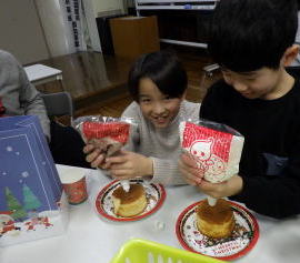 今年は国際交流員のチアゴ カナグシクさんを招き、ブラジルでのクリスマスの 様子についてお話を聞いたり、一緒にクリスマスケーキを作って食べたり交流を