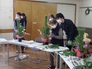 12月26日(火)講師を招き、正月の生け花をしました。