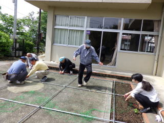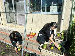 午後からは職員でゴーヤの苗を植えました。