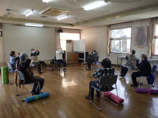 指導のもと椅子に座りながらの体操をしました。