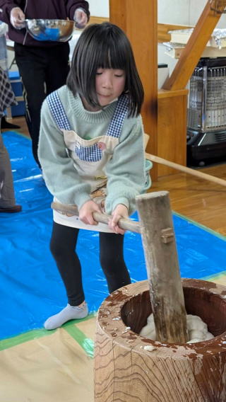 かるたとり大会を楽しんだ後、もちつきをしました。