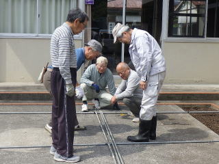 5月12日(月)地区のボランティアさんにゴーヤのネット張りをしていただ