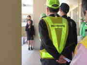 朝陽小学校見守り隊出発式(東子どもの安全を守る会)
