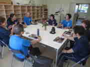 6月6日、木曜日、東幼稚園の園児さんと一緒にかぶととぼたもちづくりをおこないました。ボランティアの皆さんに前日から準備をしていただき、当日は園児14名、先生方8名、スタッフ11名で、はじめにかぶとを作りました。園児のグループにスタッフ、先生も一緒に、小さな折り紙で練習した後、大きな模造紙でつくり、それぞれがシールを張って素敵なかぶとができました。