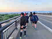 4月28日、日曜日、午前4時40分に朝陽小学校を出発し、反時計回りで宍道湖一周、50キロを歩きました。参加者は4年生から6年生までの児童10名、保護者、コーチ8名、サポート8名の計26名でした。