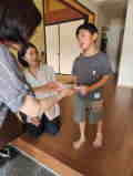 朝陽小学校へ今年度入学された東地区の17名の新1年生さんのお宅を、民生委員児童委員、主任児童委員が訪問し、お祝いの品を贈りました。みんな嬉しそうに「ありがとう」と言って受け取ってくれました。また、「学校は楽しい?」という問いかけにも、「楽しいよ」「友達できたよ」と笑顔で答えてくれました。(主任児童委員:梶谷純美子)