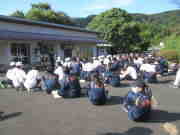 10月18日、金曜日、一畑薬師マラソン前に、一畑薬師石段清掃が2年ぶりにおこなわれました。当日は、向陽中学校1年生81名、朝陽小学校6年生34名、地元長寿の会会員と東コミセン事業委員の皆さん計26名が参加しました。各場所に分かれて、ランナーが滑らないように苔を取り、落ち葉清掃を重点に、1時間あまりおこないました。特に一番下の石段は、木々が生い茂り、来待石の上に沢山の苔が付いていて、一段一段金ブラシや草刈りカマ等で取り除きました。作業終了時には、人数の勢いでしょうか、すっかり綺麗になりました。後は当日ランナーが怪我無く登られることを祈るだけです。ボランティアの皆さんお疲れさまでした。