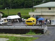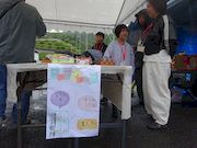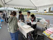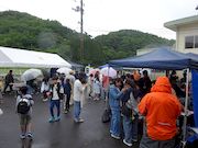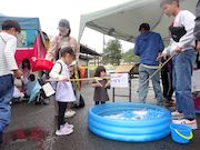 | 釣り堀ゲームは今年も人気! | 大人の出店も賑わっています | 雨の中たくさんのお客さん! |