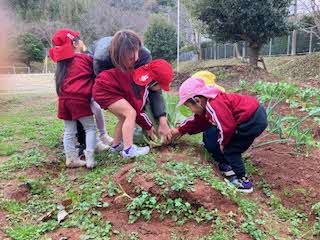 気温が低く寒い日でしたが、がんばって畑の野菜を収穫しました。大根はすぐに抜けましたが、白菜がなかなか抜けず、みんなで力を合わせて抜きました。おいしいお鍋でしたよ!ネギ、レタスも収穫して食べました!