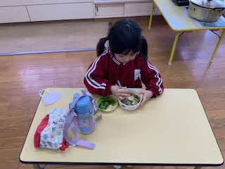 たまねぎにピーマン、なすびなど、たくさんおかわりをしてくれました!お家から持ってきたおにぎりもおいしかったね!
