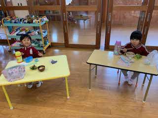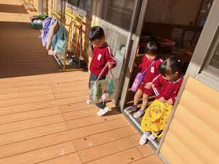 本日は、出雲市全体の保幼小交流の日でした。出雲市では、小学校への接続をスムーズにするためにいろいろなことが行われているうちの一つです。園児が入学予定の小学校に行って、小学生(特に1年生)と交流する日です。お話を聞いたり、学校案内をしたり、いろいろ楽しいことがあったと思います。残った年中さん、年少さんはかなり寂しがっていました。