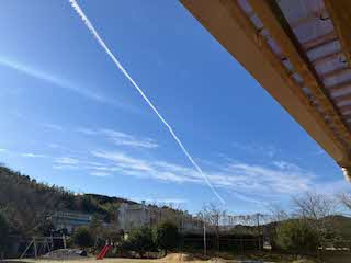 教室に帰ってびっくり!そりの跡や、サンタさんの足跡、ひこうき雲ならぬトナカイ雲!