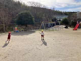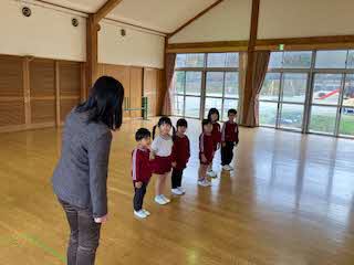 明日の小学校訪問に向けて、来年の入学に向けて、一緒に進学する町内の保育園の園児さんと交流しました。今日は、幼稚園に招いての交流でした。はじめましての会をしたあと、秋の歌「どんぐりころころ」を一緒に歌いました。それから貨物列車ゲームをし、園庭に出てリレー!最後に広い園庭で自由遊びをしました。交流が深まったかな?1月27日には、保育園にお邪魔します。