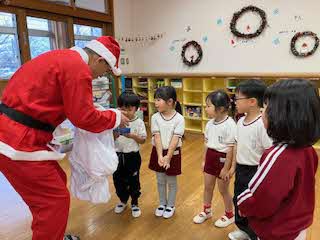 今日から12月。12月といえばクリスマスですね。「サンタさんに手紙を書いたよ!」「プレゼントは何にした?」などの会話が飛び交っています。幼稚園もすっかり12月バージョンです!