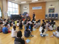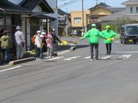 | 4月10日 青パト見守り顔合わせ会 荘原小学校の全校児童と今年度最初の対面です。新1年生初めての下校に合わせてパトロールを行います。青パト、見守りの隊員の皆様には感謝。今年度もよろしくお願いいたします。 |