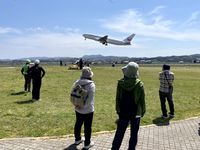 | 4月13日 健康スポーツ部主催事業、恒例の春のウォーキング。今年は開催地を変更して出雲空港滑走路周辺で行いました。離発着の大迫力を真上に見ながら、少し肌寒い4月の風の中を気持ちよく歩きました。 |