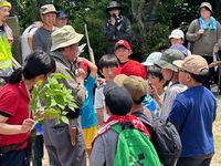 | 5月26日 健康スポーツ部主催、荘原小PTA共催の「大黒山自然観察会」を開催しました。大勢の参加で山頂はいっぱい。佐藤先生の解説や、自然物を使った遊びに大人も子ども興味津々‼ |