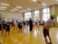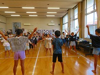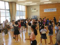 | 7月24日 今年も本日より盆踊り教室が始まりました。地域の伝統を受け継ぐ大事な事業の一つです。10日以上の練習を重ねて、様々なイベントで披露します。今年は約70名参加の大所帯です。初日には、保健師さんによる熱中症予防のお話もありました。 |