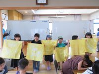 | 7月31日 夏休み工作教室「玉ねぎの皮を使って染物体験」開催 コミセンふれあい交流部主催事業 夏休み恒例事業 今年も大勢の子どもたちが集まりました。黄色の素敵な染物ができました。 |