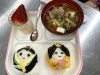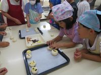 | 2月24日 子どもクッキング教室 今回のテーマはひな祭り。お内裏様とお雛様のおにぎりは、様々な材料を使ってデコレーション。見本を見て「かわいい!」の歓声が上がり、工夫して飾り付け素敵なひな祭りおにぎりの完成です。脇を飾るクッキーやゼリーもひな祭りカラーで出来上がりました。 |