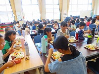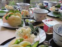 | 8月24日 夏休み子どもクッキング教室 夏休み最後の週末に集まった25人の子どもたち。メニューはうどんと豆乳ゼリー。手打ちうどんづくりは、こねて、踏んで、のばして、切ってと遊び感覚で楽しく取り組んでいました。 |