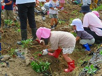 | 9月19日 さつま芋掘り コミセンこども倶楽部事業 春に植えたお芋の収穫です。 保育園、幼稚園児さんと一緒に収穫です。このお芋は、文化祭で販売されます。 |
