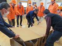 市の防災安全課、建築住宅課の方から「地震への備えと対応」についてお話していただきました。防災グッズの組み立て体験も行いました。 |