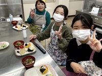 | 11月23日 今年度2回目の子どもクッキング教室開催(ふぁみ~ゆ にて) さつまいもご飯、豚肉マーマレード焼き、かきたま汁、ソフトプリン 美味しくできました♪ |